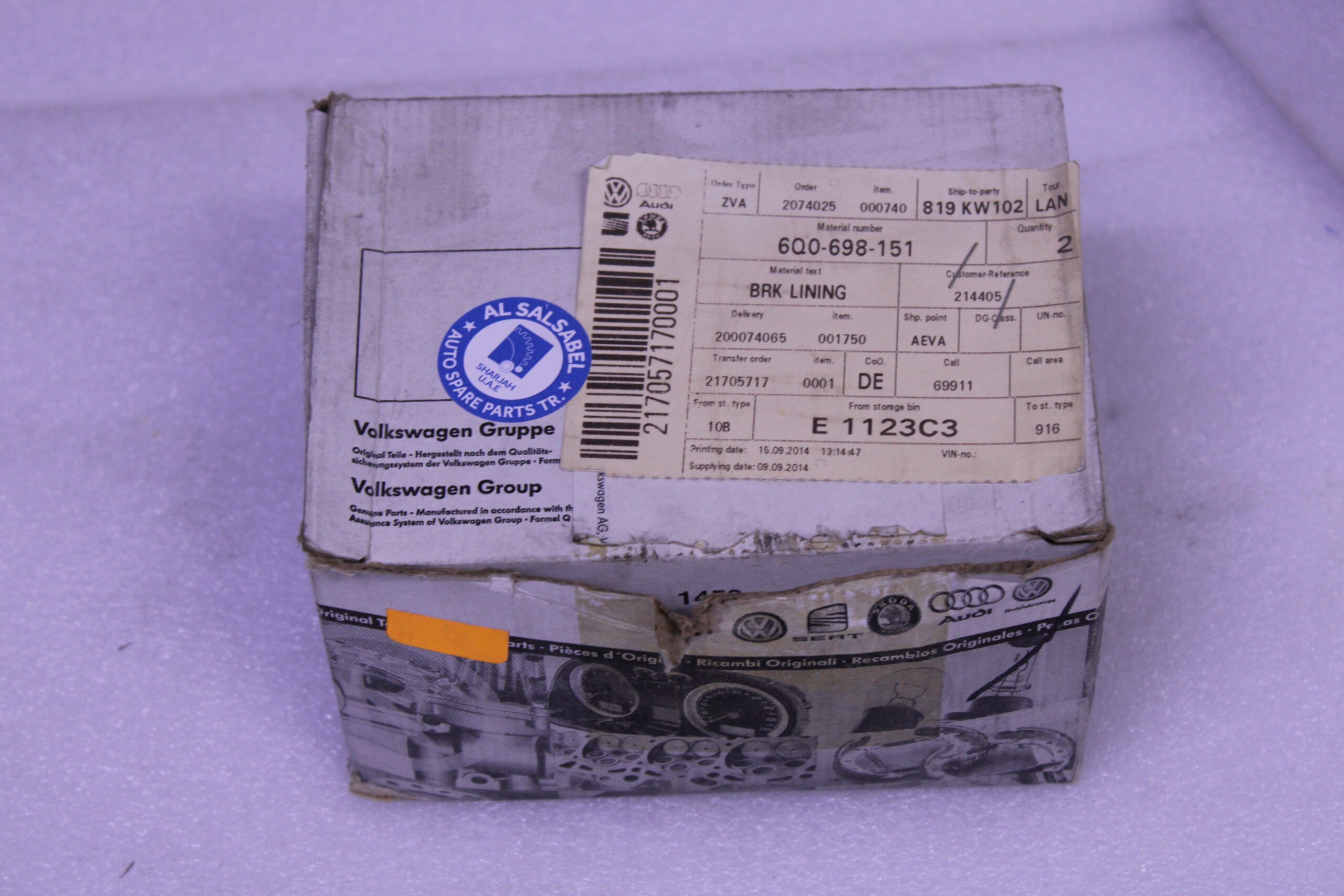 VOLKSWAGEN 1 SET OF BRAKE PADS FOR DISK BRAKE 6Q0698151