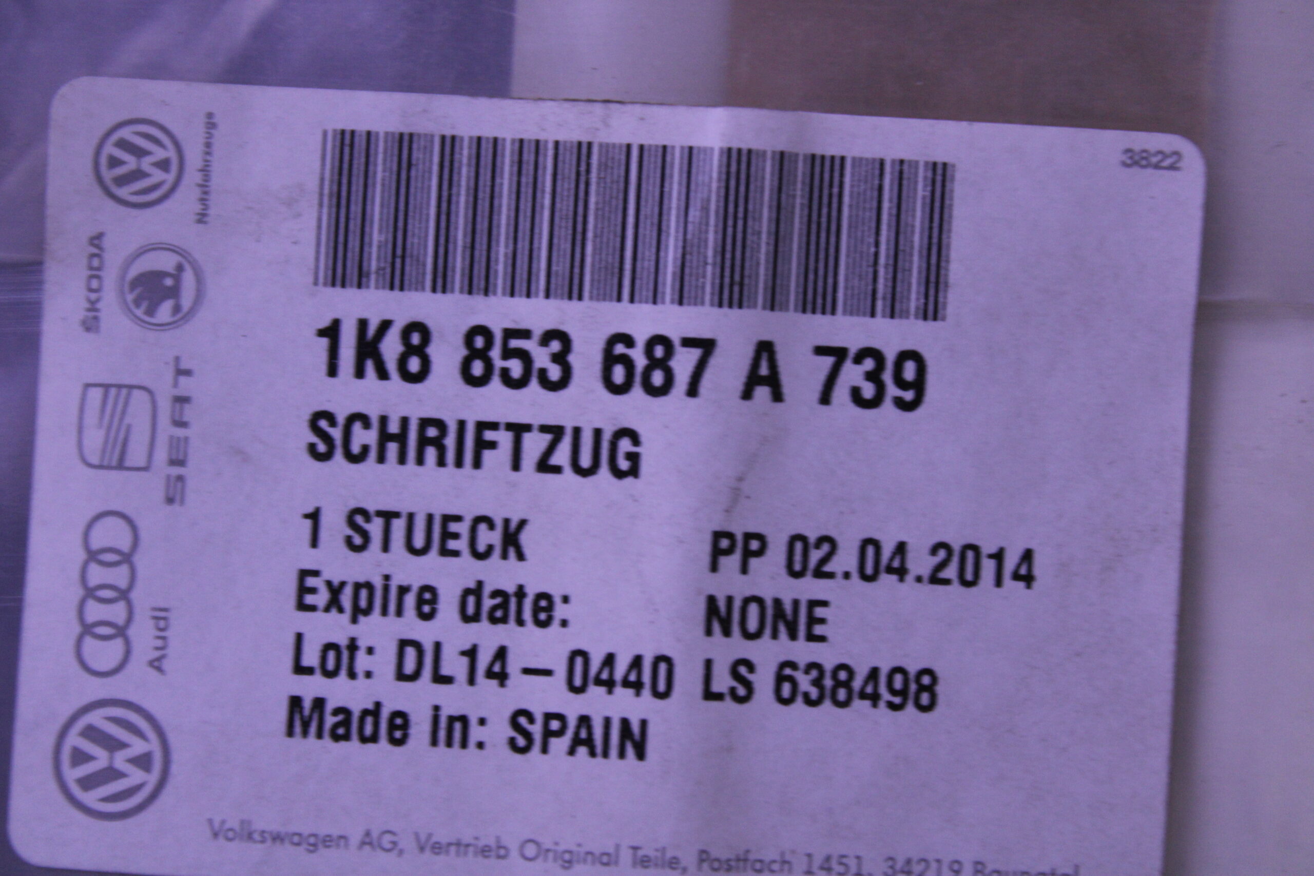 VOLKSWAGEN INSCRIPTION CHROME 1K8853687A 739