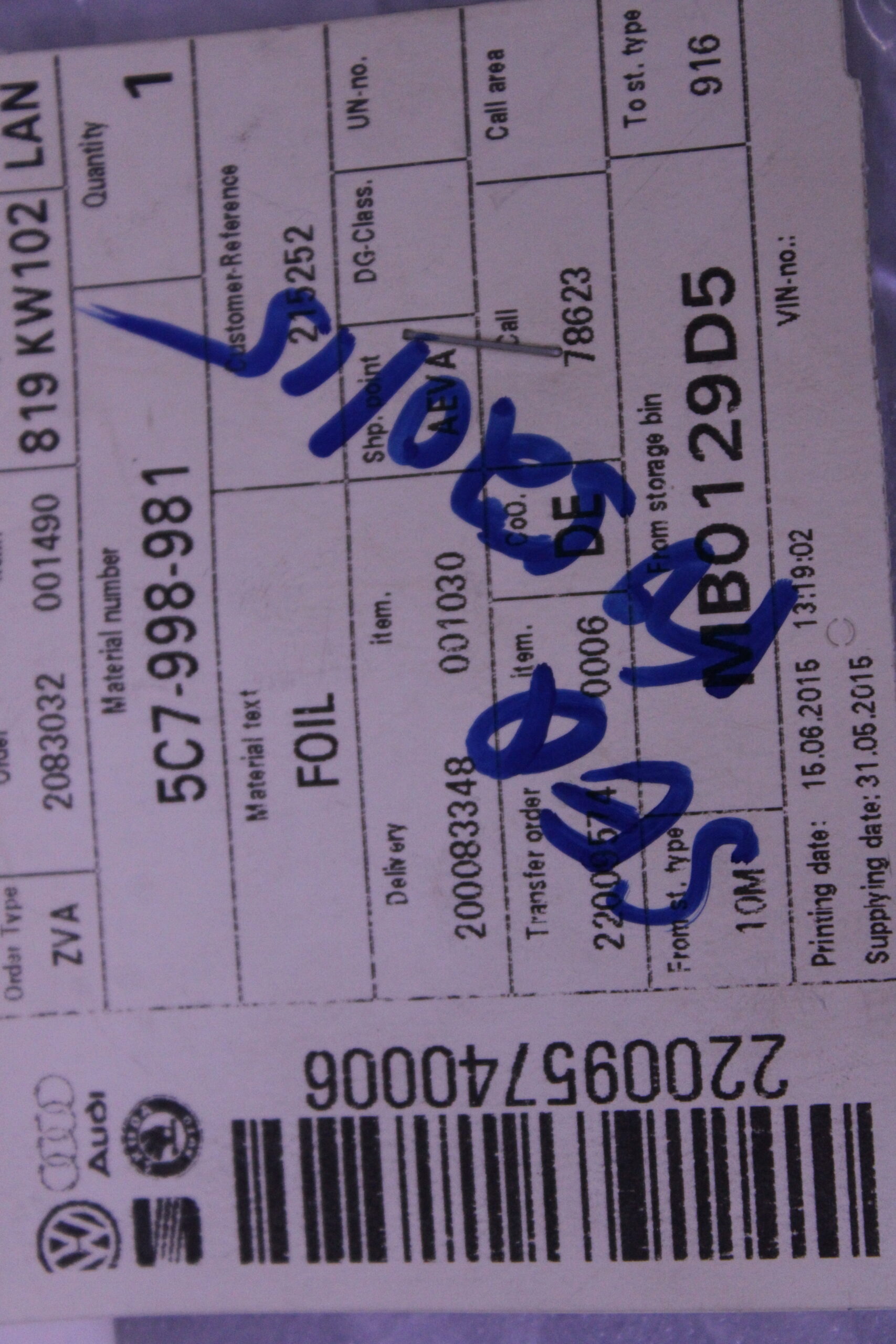 VOLKSWAGEN MASK FILM HEAD LIGHT 5C7998981