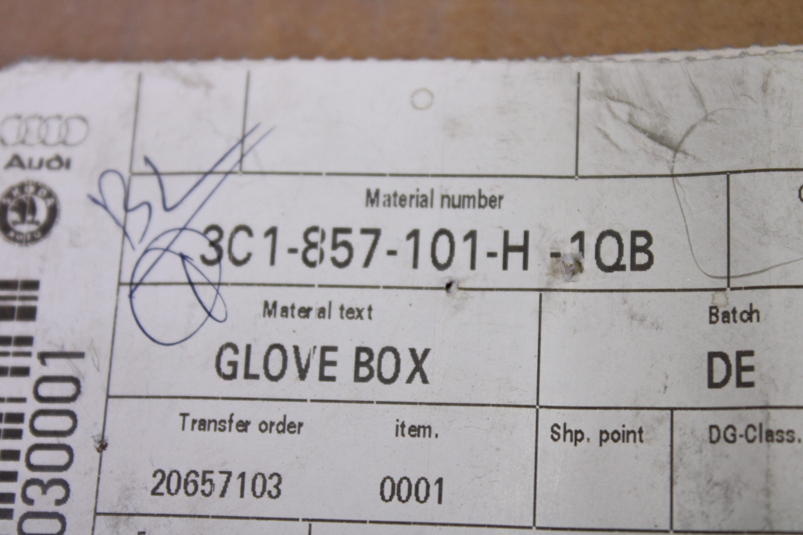 VOLKSWAGEN PASSAT GLOVE COMPARTMENT BLACK 3C1857101H 1QB