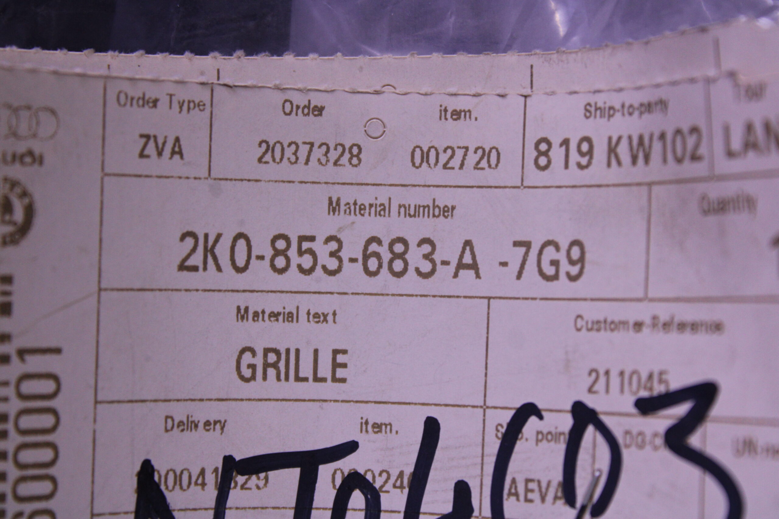 VOLKSWAGEN VENT GRILLE FOR MODELS WITH FOG LAMPS GRAPHITE 2K0853683A 7G9
